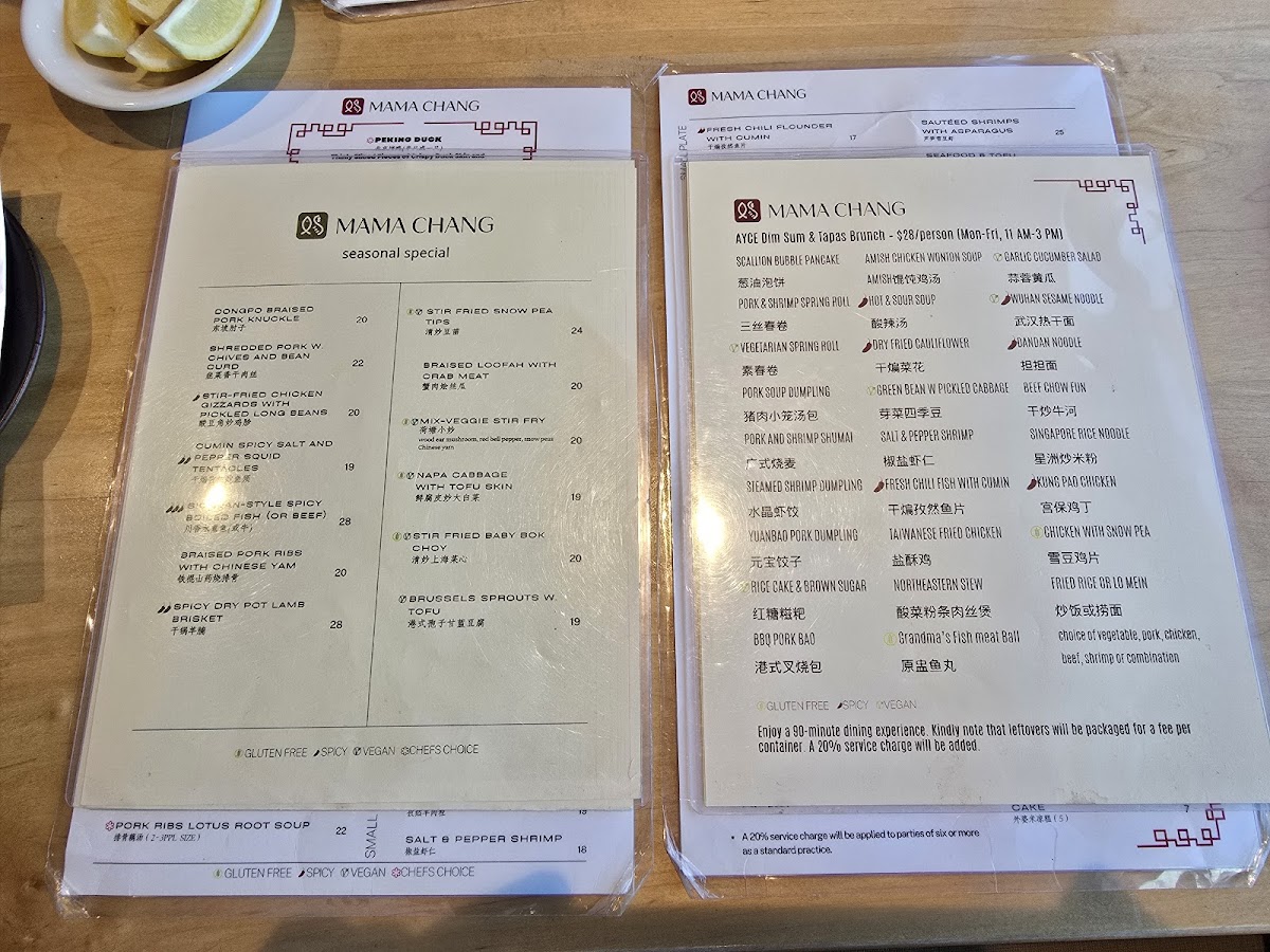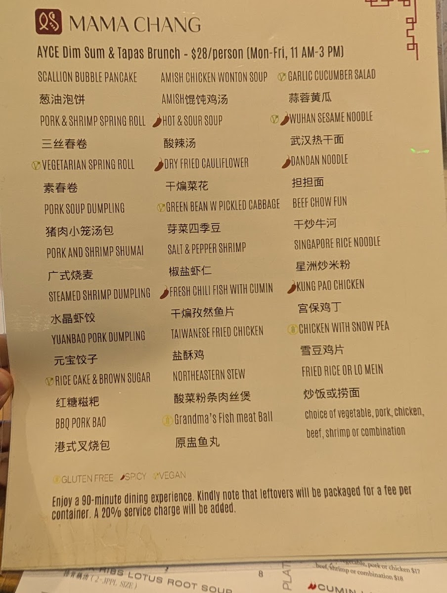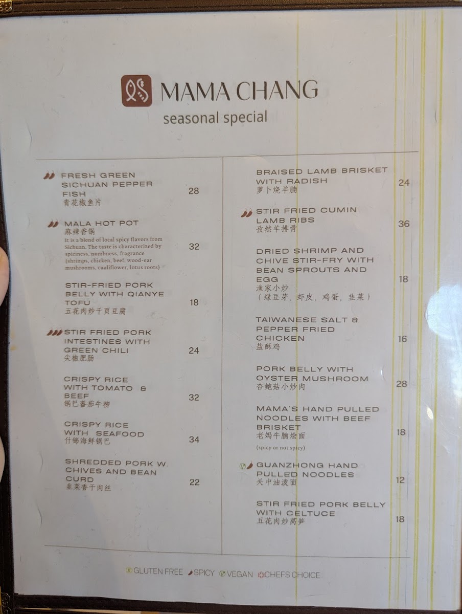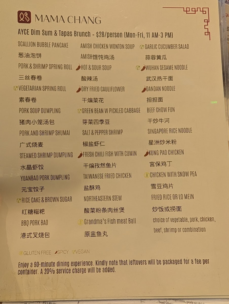 Mama Chang Menu